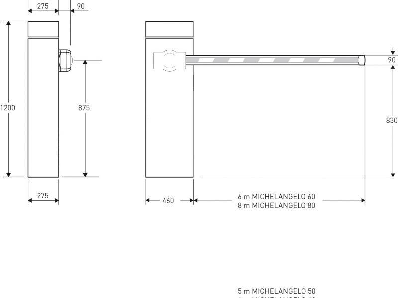 Barrière levante pour passages jusqu'à 8m00 Vitesse d'ouverture : 6m00 - 6 secondes - 8m00 : 8 secondes