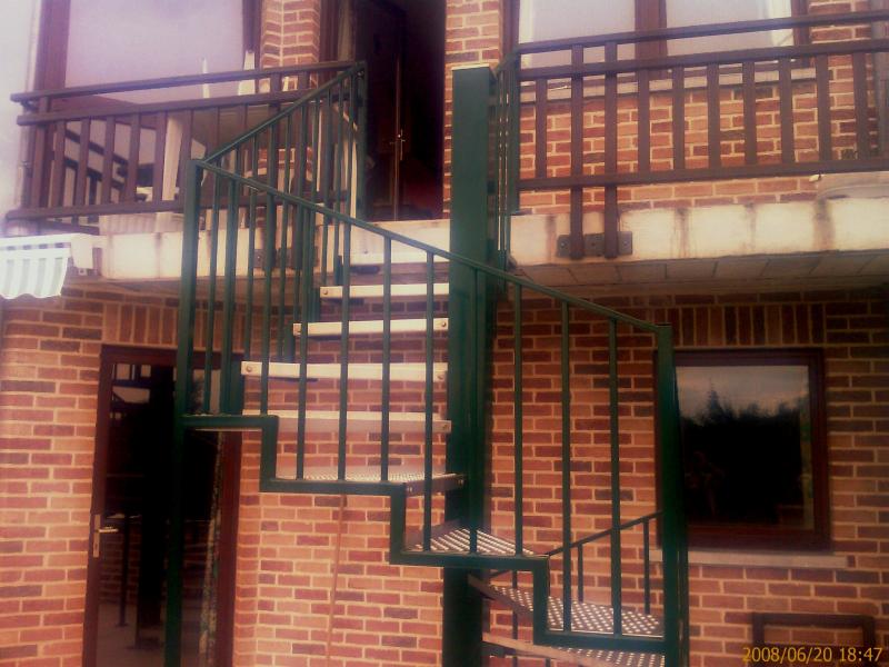 Escalier tournant "carré" Un espace réduit pour un accès facile. Réalisable avec marches galvanisées ou Inox, marches en bois ou en pavés ou pièrres.
