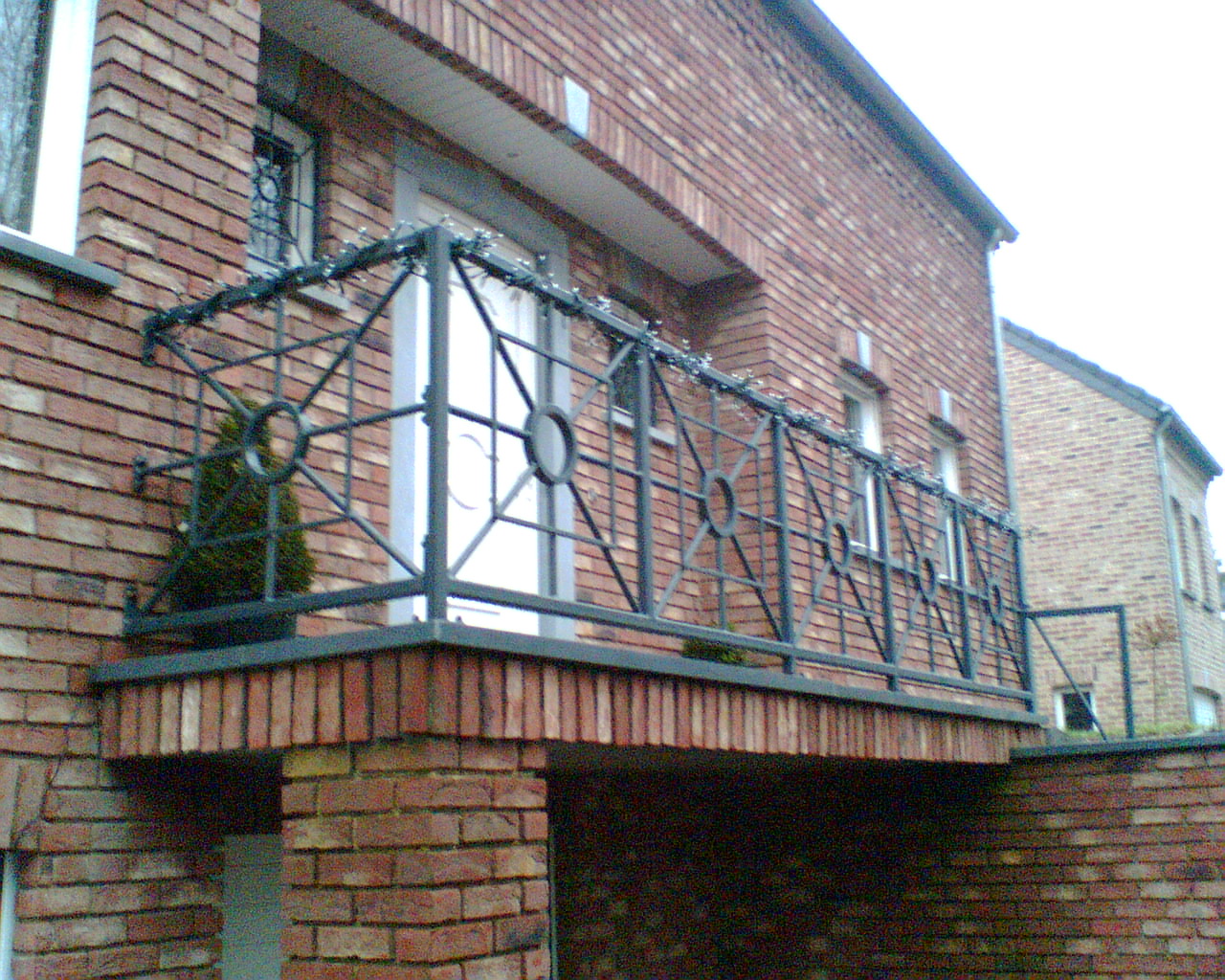 Garde-corps en acier galvanisé et poudré. Les protections de fenêtres ont été réalisées dans le même style.
