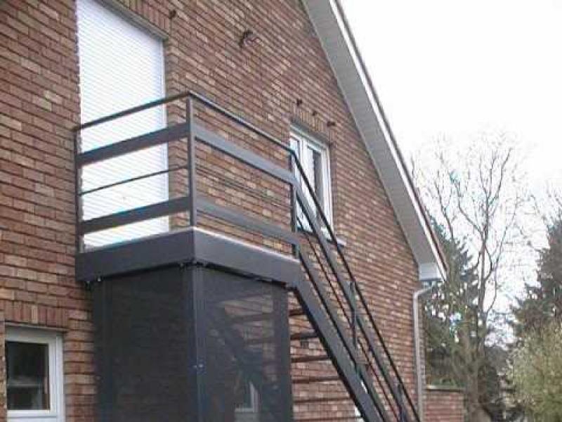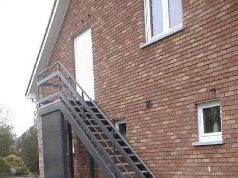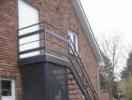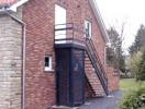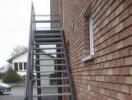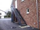 Escalier droit avec cage fermée pour rangement des poubelles. Marches autonettoyantes INOX. Structure et garde corps Galvanisé et poudrés.