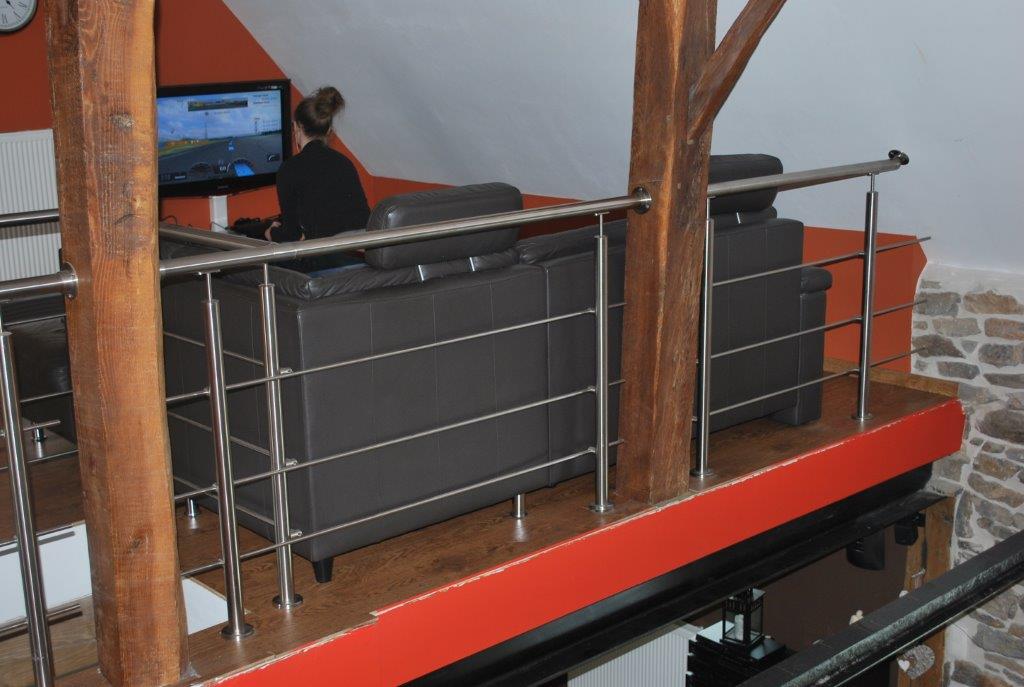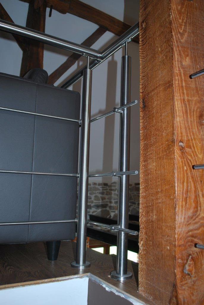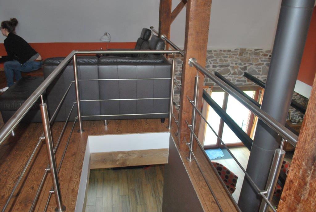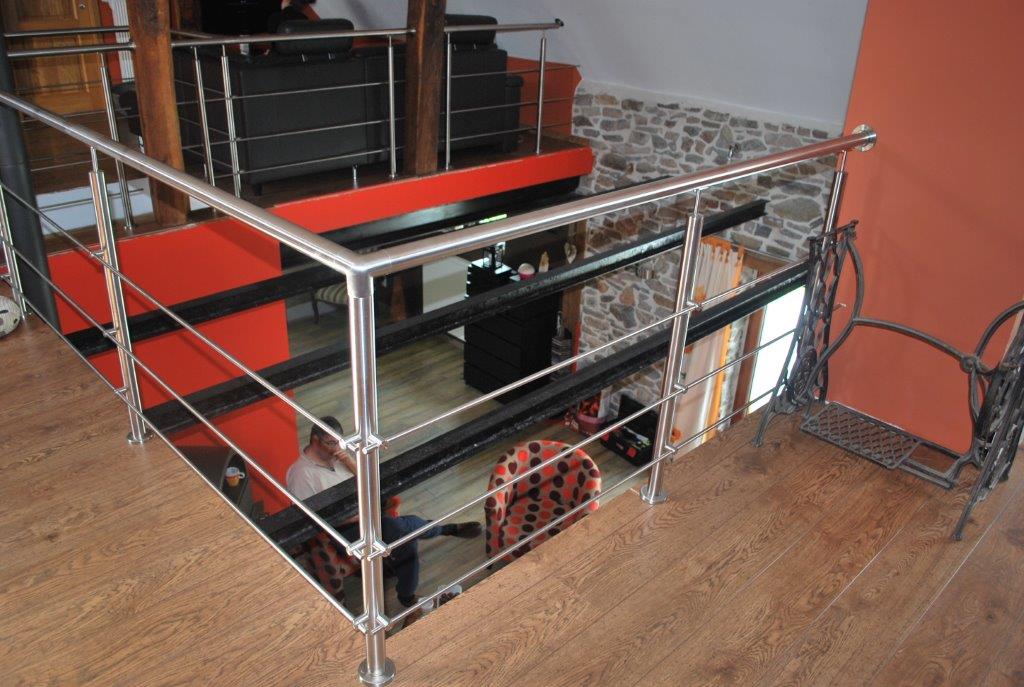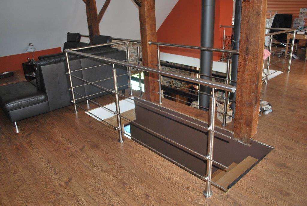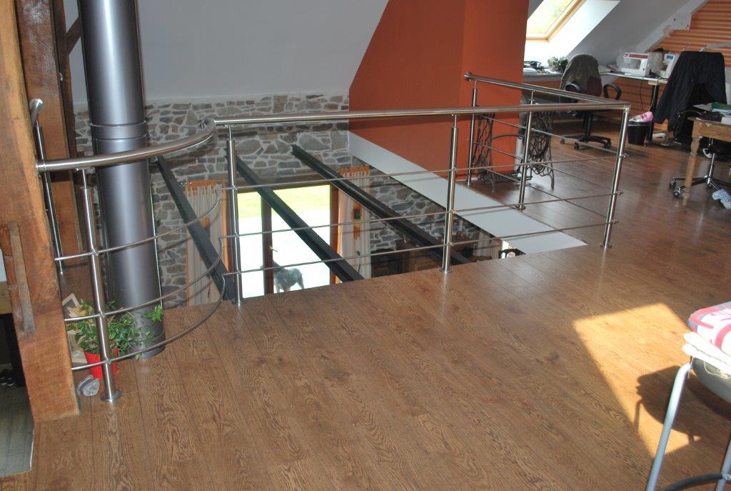 Garde-corps d'intérieur en INOX. Finition soignée - Adaptation à la configuration spéciale de la pièce. Prête à recevoir l'escalier et la rampe assortie qui seront placés dans un second temps.