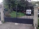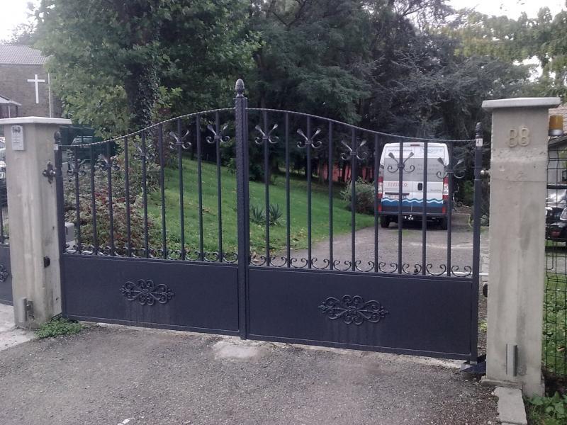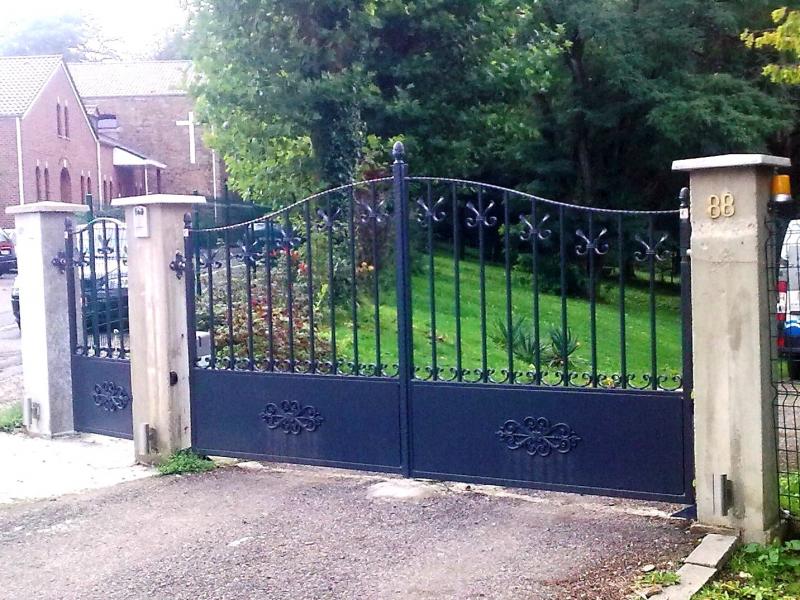 Portail "Chapeau de Gendarme" avec décoration "Papillons - Ile de France" et sous bassement tôlé avec fontes décoratives à l'ancienne