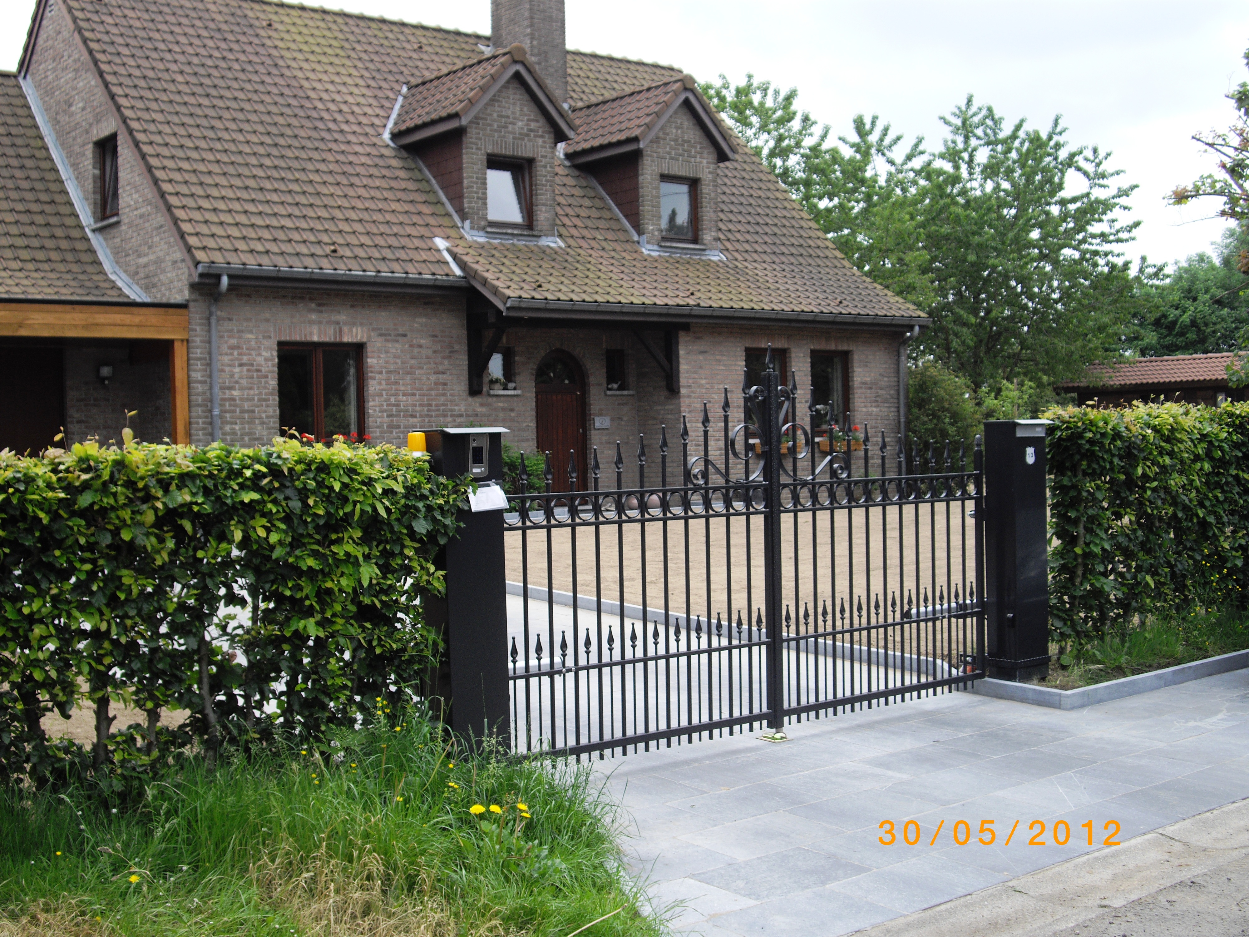 Portail typique du Pays de HERVE avec volute inversé et coeur centrale agrémenté d'un ligne de ronds décoratifs.