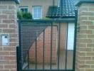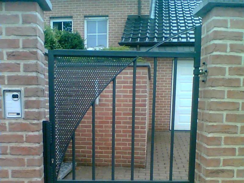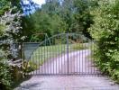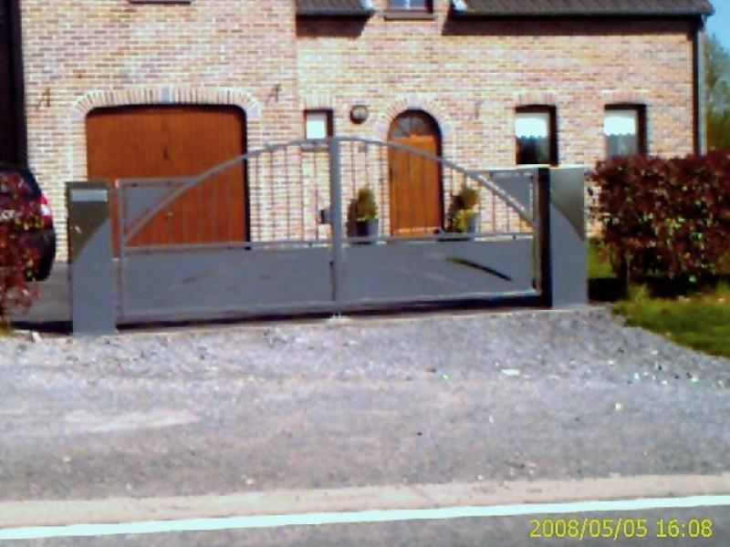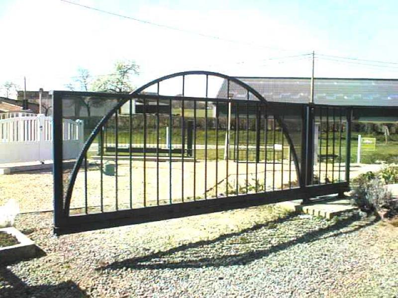 Portail avec arc traversant la lisse supérieure. Ce designest devenu un "classique" des portails contemporains car il permet de nombreuses variantes.
