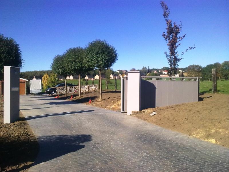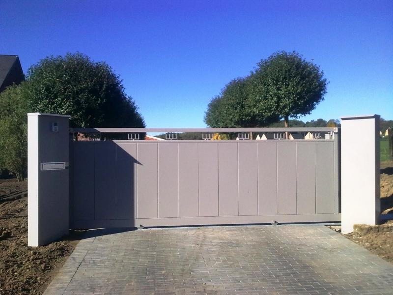 Portail dessiné en collaboration avec notre client. Remplissage en panneaux ALU. Colonnes en ALU. Moteur BFT-DEIMOS-24V-Commandé par télécommandes + clavier codeur + Vidéophone. Exécutables dans les versions suivant :