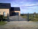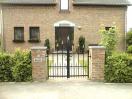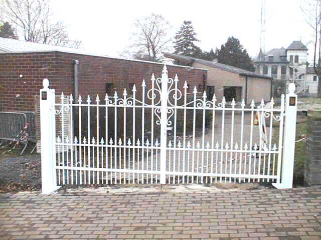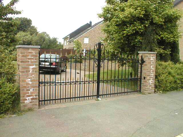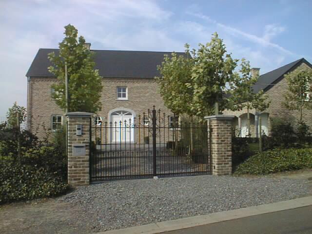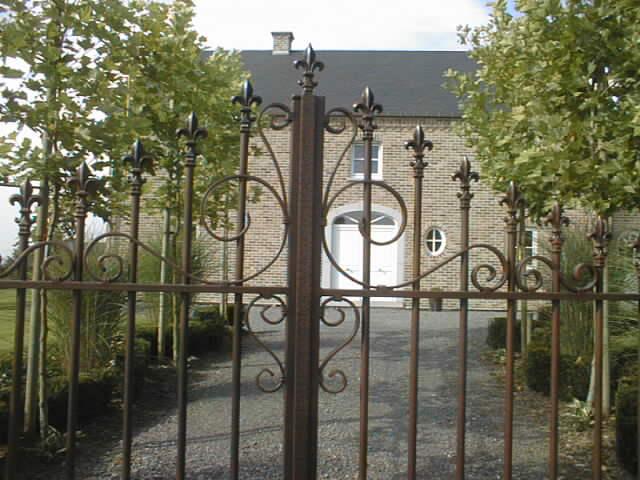 Portail typique du pays de Herve - Avec son volute central inversé. Barrière en fer forgé tubulaire, (barreaux pleins possibles) Exécutable dans différentes versions battante 1 ou 2 vantaux ou coulissantes droites ou inclinées. Adaptable à tous les terrains. Traitement antirouille total HB "traitrio" Durée de vie estimée supérieure à 50 ans.