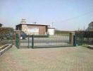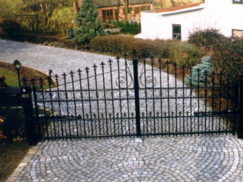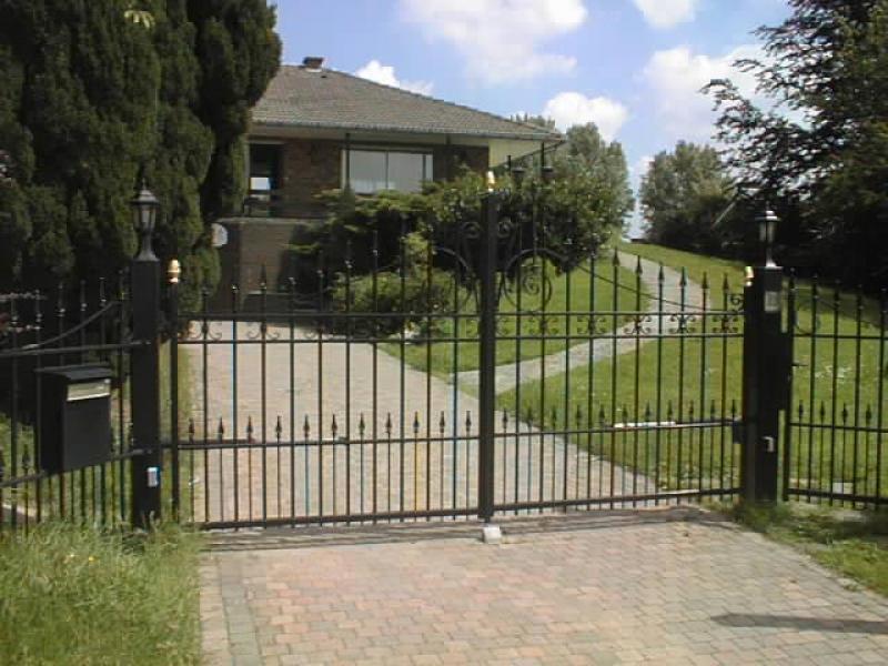 Portail rustique avec grand volute + 1 ligne déco "X" sous la lisse supérieure
